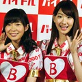 「AKB48」の柏木由紀(NGT48兼任)と「HKT48」の指原莉乃の2人が6月18日(木)、アルバイト求人情報サイト「バイトル」の新CMの会見に出席した。今回の新CMは先日の総選挙の翌々日に撮影が行われており、総選挙でワンツーフィニッシュを飾った指原さん、柏木さんに、渡辺麻友、高橋みなみ、松井珠理奈、山本彩、宮脇咲良という総選挙の結果の上位7名――“新神7”のみが出演している。また、昨年に続いて、「バイトルの日」である8月10日(月)に8,100人のファンを招待してのライヴが開催されることになり、写真家のレスリー・キーによって撮影された新CMでもライヴの告知が行われている。CMの撮影について指原さんは「ムードがよかった。フワっとしてて楽しかったです。ウチ(=HK48T)から宮脇も入ってるし」と笑顔で述懐。一方で「顔がむくんでる。前々日(=総選挙の日)に泣いてるから。もうちょっとリンパを流しとけばよかった」とぼやき、笑いを誘っていた。“雨女”の称号を持つ柏木さんだが、この日も雨が降ったりやんだりの天気。報道陣からの指摘に「世間は梅雨なので。雨女でありつつ、梅雨だからじゃないでしょうか(笑)」と批判をかわす。また、CMにちなんで夏に向けてもしもバイトをするなら? という質問には、柏木さんは大好物だという「かき氷屋さん!」でのバイトを希望。「こないだも焼肉に行って、(かき氷が)食べたくなって店を移動した」というほど好きだそうで、今年もすでに「3~4回行ってる」とのこと。大好きなかき氷を「作ってみたいです!」と明かした。指原さんは「父が地元の祭りで焼鳥を焼いてるんですが、私が総選挙で初めて勝った頃から『指原の焼鳥』というのを前面に出してる(笑)。父と一緒にやってみたい」と語った。来年の総選挙で勝てば、歴代最多の3度目の戴冠となる指原さんだが「鬼が笑います、早い!」と語り「どうなってるか、誰が出るのかもわからないので、できれば」と言葉を濁す。今回、自身最高位の2位を獲得した柏木さんは「さっしーの壁の厚さを目の当たりにしたので頑張りたい!」と悲願の1位獲得に早くも意欲を見せていた。新CMは6月22日(月)よりオンエア開始。