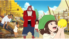 「GREEN DA・KA・RA」のTVCMでお馴染みのグリーンダカラちゃんとムギちゃんが、この夏、話題のアニメ映画『バケモノの子』とのコラボを実現。本作の細田守監督とアニメ制作会社スタジオ地図が原画とアニメーションを担当し、グリーンダカラちゃんとムギちゃんを初のアニメキャラクター化させ、2人が映画の世界に訪れる新TVCMが発表された。CMでは、映画の舞台でもあるバケモノ界・渋天街に降り立ったグリーンダカラちゃんとムギちゃんの仲良し姉妹が、本作に登場する人間の少年・九太や、九太の師匠で熊のバケモノの熊徹、そのほかのキャラクターたちと仲良く交流する姿が描かれる。新TVCMは全2種類で、修行中の熊徹と九太のもとへ「GREEN DA・KA・RA」と「GREEN DA・KA・RA やさしい麦茶」を届けに行く「差し入れ」篇、そして、渋天街の市場で集めた“いいもの”でできた「GREEN DA・KA・RA」と「GREEN DA・KA・RA やさしい麦茶」を、バケモノたちにお披露目する「市場」篇が、それぞれ放送予定だ。この度「差し入れ」篇が公開され、映画の世界にお邪魔したグリーンダカラちゃんとムギちゃんが、暑そうな野外で熊徹相手に修行中の九太のもとへ、大きな桶に入った「GREEN DA・KA・RA」と「GREEN DA・KA・RA やさしい麦茶」を届ける姿が映し出される。最後には、このTVCMシリーズでは恒例となっている飲料を飲み終えたあとの“プハー”を、グリーンダカラちゃん、ムギちゃん、熊徹、九太の4人で一斉に披露! この夏の家族の水分補給に「GREEN DA・KA・RA」と「GREEN DA・KA・RA やさしい麦茶」を、というメッセージを表現している。今回のコラボで、CMの原画&アニメーションを制作した細田監督は「グリーンダカラちゃん・ムギちゃん、ようこそ渋天街へ! そして、差し入れをありがとう!! 熊徹や九太たちと一緒にみんなで美味しくいただくね。ありがとうございました!」と感謝のコメント。さらに、グリーンダカラちゃんとムギちゃんを演じる、しずくちゃんとなぎさちゃんも、本CMを見て「二人とも、まつげがあるところが似ていました」(しずくちゃん)、「かわいくなってた」(なぎさちゃん)と、自身のアニメ化を楽しんでいる様子。また、「差し入れ」篇と「市場」篇をベースに制作した80秒のWEB限定ムービーが、7月13日(月)から「GREEN DA・KA・RA×バケモノの子」タイアップページにて公開決定。こちらの映像では、ラストに本物のグリーンダカラちゃんとムギちゃんが登場し、アニメ化された本TVCMを見て嬉しそうに喜ぶ姿が実写版で映しだされるとのこと。「差し入れ」篇(15秒)は6月27日(土)より、「市場」篇(15秒)は7月1日(水)よりそれぞれ全国にて放映予定。『バケモノの子』は7月11日(土)より全国にて公開。