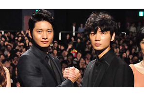 向井理と綾野剛、レッドカーペットでガッチリと抱擁!