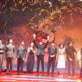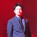この日の会場にはレッドカーペットが敷かれ、舞台からせり出した花道を一人ずつ歩いて登場したが、最初に向井さんが姿を見せると、会場のボルテージは一気に上がる。続いて、綾野さんが登壇し、花道中央で向井さんとガッチリと男の抱擁を交わし、会場は大歓声に包まれた。途中、吹石さんが履いていたサンダルの留め金が、歩いている最中に外れてしまうハプニングがあったが、すぐに綾野さんが機転を利かせ、落ちた金具を拾い上げた。