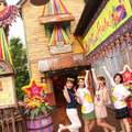 東京ディズニーシーで特におすすめの撮影ポイントは、「フルータ!フルータ!フィエスタ!」を展開中のロストリバーデルタ! ここではバナーや南国のフルーツをモチーフにしたカラフルなパラソルや南国ムードのフルーツやリボン、ミッキーマウスをかたどった花飾りなどがいっぱい。フルーツ収穫祭をにぎやかにお祝いする街並みで想い出を残そう。