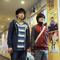 ドラマ&劇場版『モテキ』で大根仁監督が見せた革新的とも言えるエッジの効いた映像表現は若い層を中心に絶大な支持を集めたが、映画『バクマン。』でもこれまでにない新たな映像での描写に挑戦!佐藤健&神木隆之介の演じたサイコー&シュージンが2人で漫画を執筆するシーンにおいて用いられたプロジェクションマッピング。物語の特徴を最大限に生かしつつ制作されたオープニング&エンディングロール。これら映画版『バクマン。』ならではの魅惑の映像表現の秘密を解説する!漫画をテーマにした本作において、漫画の執筆シーンは当然、外すことのできない重要シーンで何度も登場するが、通常、漫画を執筆するという作業は黙々と机に向かい、ペンを走らせるというはたから見ると非常に地味な作業である。映画として描く上で、ここに「動き」や「疾走感」を加えたい。大根監督はそう考え、プロジェクションマッピングを使用しての撮影に思い至った。プロジェクションマッピングというと、壁に映像を投射し、立体感や動きを表現するものとして屋外イベントなどで行われているイメージが強い。おそらく、これまで映画で本格的に使用されたことはない。だが、舞台やミュージックビデオの世界では近年、使用されることが増えてきたという。大根監督は森山未來が主演した2012年の舞台「テヅカTeZukA」でマンガを立体的にプロジェクションマッピングするという表現に出合った。この舞台にスタッフで参加していたのが、本作におけるプロジェクションマッピングを担当している上田大樹。ちなみに上田さんと大根監督は、2013年に発表された「マキシマム ザ ホルモン」の「予襲復讐」のミュージックビデオでも一緒に仕事をしており、こちらでも実写と文字やイラストを組み合わせた映像表現が取り入れられている。本作のプロジェクションマッピングによる漫画執筆シーンだが、上田さんに渡された台本上ではたった1~2行のト書きがあるだけ! ここからアイディアを膨らませ、映画におけるプロジェクションマッピングの使用という難関プロジェクトが動き出した。まずこちらのシーンだが、場所はあくまで、サイコーとシュージンの“拠点”である、漫画の棚と机がひしめく仕事場。漫画を執筆する2人や机や壁に、実際の漫画の原稿の絵が投影されることになるが、まず、映像を映し出しやすいように、このシーンの撮影のために壁や床を不自然ではないバランスで白くするという作業が行われた。そして、天井からプロジェクターを吊り下げ、映像を実際に投射してみる。こうした準備だけで丸1日が費やされた。そして撮影本番当日。佐藤さんと神木さんに細かい動きが説明される。最新鋭の技術を使用したシーンではあるが、実際の撮影自体は非常にアナログ! 要は、プロジェクターから投影される映像に2人が動きを合わせて芝居することで、実写と絵が融合した映像が出来上がるということ。実際、このシーンに関して、後からCGなどで映像が処理された部分は一切なく、シュージンのメガネのレンズに反射して映っている漫画さえ、後から加えられたのではなく、この場で撮影されたものである。2人はピッタリと息が合った状態で投射される映像に合わせて芝居をしており、「サカナクション」の音楽もあわせ、立体感&ライヴ感にあふれるシーンに仕上がっている。ちなみに上田さんは、本作のオープニングで描かれる「週刊少年ジャンプ」の成り立ちと歴史を説明する映像も制作している。「ジャンプ」がどのように誕生し、どんな人気作品を生み、日本で最も売れるマンガ雑誌になったのか? 「ジャンプ」の偉大さ――すなわち、サイコーとシュージンが目指すジャンプの頂点というのがいかにすごいのかをスピーディに映像で見せており、「ジャンプ」で育った人間にはたまらないシーンになっており、冒頭から心をわしづかみにされる!そして、忘れてはいけないのがエンドロール。大根作品といえば、劇場版の『モテキ』で森山未來が「スチャダラパー」のライヴに“乱入”し、「今夜はブギーバック」を熱唱するという映像を使用しつつ、単なるライヴ映像に終わらない斬新さが大きな話題を呼んだ。最後の最後まで観客を楽しませる映像表現はもちろん、本作でも健在!『モテキ』に続き、本作でもエンドロールは映像製作チーム「easeback」の中島賢二と森諭が担当しているが、2人に渡された台本の最後のページに記されていたのは例によって例のごとく「映画史上、誰も観たことのないエンドロール」という文字…。2人は“漫画の制作”特に「週刊少年ジャンプ」をキーワードに映像を制作しているが、いったいどんなエンドロールに仕上がっているのか…? こちらは映画を見てのお楽しみ! 物語が終わっても席を立たずに、最後まで仕掛けが施されたエンドロールを楽しんでほしい。文字通り、オープニングからエンドロールまで! 見る者を飽きさせず、俳優の演技を尊重しつつ、その魅力を