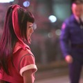 以前、公開された“刀を握りしめるミコの姿”の場面写真から、マシ・オカ同様、アクションに期待が高まる中、「結構戦ってます。撮影の次の日は全身筋肉痛、みたいな(笑)。撮影時間は長くて14時間ぐらい(撮影)してますね」と、祐真さん自身も連日のハードなスケジュールの中でもアクションシーンに自信を見せる。