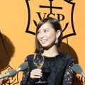 10月8日(木)に、六本木ヒルズ・大屋根プラザで行われた、期間限定のシャンパンラウンジ「ヴーヴ・クリコ×ジョエル・ロブション ポップアップラウンジ」のオープニングイベントに女優の市川由衣が登場。市川さんは、先月報じられた俳優の戸次重幸さんとの電撃結婚以来、初めての公の場となるため、記者からは質問が相次いだ。「結婚を前提にお付き合いをしてくれと言われた時には驚きましたね。わたしでいいのかなって」と、交際がスタートした当初を振り返る。「初めは結婚する気はなかったんですけれど、一緒に過ごしていくうちに、だんだんと結婚を考えましたね」と市川さん。結婚前提の交際だったためプロポーズはなかったというが「『結婚を前提に』と言われた時は嬉しかったですね。ビビッときました」と喜びを語った。イベント当日は結婚指輪はしていなかったが、指輪は戸次さんのプレゼントではなく、一緒に選んで買ったという。普段も美味しいグルメやお酒を飲みに行ったりと相思相愛のよう。「結婚してからいつも笑っているような気がします。幸せ…なんですかね(笑)。楽しいことは倍になって、悲しいことは半分になる。2人でいることがプラスになっていけばいいと思っています」。子供について質問が飛ぶと「当然考えています。男の子か女の子かはどちらでもいいですね」とコメントした。ブラックのシックなドレスで登場した市川さん。ヴーヴ・クリコは、マダム・クリコが一人で発展させてきた高級シャンパンで、自立した女性のイメージがある。「今後もこのシャンパンにイメージされるように自立した女性になりたいですね」と市川さんは言うが、「自分のペースを大切にゆっくりと進んでいきたいですね」とも続けた。戸次さんとの仲むつまじさを感じさせてくれた市川さん。旦那さまのことは名前で呼んでいるそうで、「もしかしてシゲちゃんですか」と記者から質問が飛ぶと「そうは呼んでいませんが(笑)、そんな感じです」と答えていた。