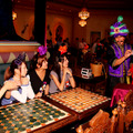「ディズニー・ハロウィーン」開催中の期間は、「カスバ・フードコート」で食事をしていると、シアター系アトラクション「マジックランプシアター」でおなじみの2流マジシャン、シャバーンとアシスタントのアシームをはじめ、ジャファーの手下たちなど3組のマジシャンがゲストのテーブルまでやって来ておもてなし! 食事中のゲストのテーブルに現れてマジックを披露していく、「カスバ・フードコート」店内のアトモスフィアショーだ。