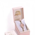 セイコーネクステージのレディースブランド「WIRED f」とコラボレーションしたこのウォッチは、”クリスタルスターコンパクト”をイメージしたデザイン。ピンク色の文字盤や、フリルカットがほどこされた風防ガラス、ムーンスティックの三日月が輝く秒針が特徴だ。バンドはシャンパンゴールドのメタルバンドと、パールホワイトの革バンドの2種類が用意されている。
