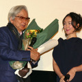 吉永小百合と二宮和也が12月12日(土)、親子役で共演した『母と暮せば』(山田洋次監督)の初日舞台挨拶に登壇。二宮さんが感謝の手紙をサプライズ披露すると、座長にして現場の“母”だった吉永さんは「皆さんのおかげでやり遂げることができた」と感激していた。受け取った手紙を胸のあたりで、我が子のように大切に抱きしめた吉永さん。昨年12月に行われた製作会見から1年間に渡り、主演女優として撮影はもちろん、プロモーションも引っ張ってきただけに「山田丸という大きな船に乗り、力と心を合わせた現場。公開されるのはうれしい気持ちですが、ここにいる皆さんとしばらくお別れするのはつらい」と複雑な胸中を明かした。一方、“息子”二宮さんは「現場ではとても気づかってくださり、現場を元気にしてくださった。大事なことを教わりましたね」と吉永さんに感謝の意。映画は母親と亡くなった息子の亡霊の交流を描いており「会話そのものは普通でしたが、触ろうとすると消えてしまうから…」(吉永さん)、「僕だって、消えなくなかったですよ」(二宮さん)と切ない親子関係をふり返った。長崎で助産婦として暮らす伸子(吉永さん)の目の前に、3年前に原爆で亡くなった息子の浩二(二宮さん)が“ひょっこり”姿を現すという、山田監督が初めて手がける心温まるファンタジー。かつて広島を舞台にした『父と暮せば』を著した故・井上ひさしの遺志を継ぎ、山田監督が脚本を執筆した。二宮さんは「一番大変だったのは、僕が『戦争を知らない』ということ。教科書やいろいろな作品を通して、学んではいるが、戦争を経験なさった山田監督に勇気を出して『知らない』と伝え、真実を教えてもらわないと、結局間違ったことを表現してしまうことになるので」と苦労を語っていた。東京・有楽町の丸の内ピカデリーで行われた初日舞台挨拶には共演する山田監督、吉永さんと二宮さんに加えて、黒木華、浅野忠信が同席した。『母と暮せば』は全国公開中。