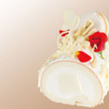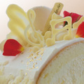 ロールケーキの中心にはなめらかなホワイトチョコのムースがたっぷりとロールされ、白いマカロンと音符、主人公マルグリットの衣装をイメージした羽根のチョコレート細工をトッピング。彼女の持つ激しい愛と情熱に見立てた赤いベルローズと金粉があしらわれた、華やかなコラボレーションケーキに仕上がっている。価格は1,296円。映画の公開と合わせて、ぜひチェックしてみて。