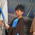 子どもたちは、映画の中でパダワンと呼ばれるジェダイの訓練生として、勇者の中の勇者・ジェダイ・マスターから、強力で危険な武器のライトセーバーの使い方を習った。攻撃のためというより危険が迫ったときだけに使うものだと、騎士としての精神も同時に叩き込まれる。ライトセーバーを振ったり止めたりなど、見様見真似で習得する中で、なぜかしゃがむという実技も。「相手に頭を切られたら大変だから?」と子どもから質問が飛ぶ中、マスターは「首を切られないようにするためだ」と教え、映画の中でジャンゴ・フェットがしゃがむことを知らずに切られたことについても触れたうえで、攻撃をよけるレッスンも行った。