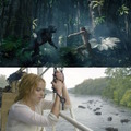 そして、なんといってもジャングルでの撮影シーンは、観るものをまるで本物のジャングルにいるかのような錯覚を与えてくれるほどのクオリティ。滝同様に、セットで組み立てられたジャングルは、合計7バージョンも作られ、キャラクターの動きに伴い、景色が次第に変化するよう、大胆な方法がとられた。そんなジャングルにゴリラなどのフルCGの動物たちが加わることで、“リアル”と“バーチャル”が見事に融合した、唯一無二の世界観が作り上げられた。
