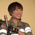 幽霊退治を描いた人気SFコメディシリーズの27年ぶりとなるリメイク映画『ゴーストバスターズ』日本語吹き替え版3D特別上映会が8月15日(月)、TOHOシネマズ六本木ヒルズにて行われ、日本語吹き替えを担当する友近、渡辺直美、椿鬼奴、山崎静代(南海キャンディーズ)がお馴染みのプロトンパックを背負って登場した。囲み取材では14日に発表された人気アイドルグループ「SMAP」の解散報道についても話が及び、メンバーの稲垣吾郎と番組共演経験もある友近さんは、「ニュースで知りました。解散っていうのは、まさか本当になるとは思わなかったですね」と、驚きを隠せなかったと話した。さらに、報道陣から最後に「SMAP」と4人での共演はあるかと尋ねられると、椿鬼奴さんは「ブッキングしてくださるんですか(笑)」? 私たちは全然かまわないですけど、向こうが何て言うか…もちろん出たいですよ」と、交わしていた。さらに、山崎さんは自身のユニット・南海キャンディーズの解散があるかと聞かれ、「解散はマイナスというわけではないなと…あるな、って(笑)」と笑いで報道陣を煙に巻きながらも、相方の山里亮太については「バスターしたいですね」と、気持ちを込めていた。『ゴーストバスターズ』は、大都会ニューヨークに相次いで出現し、街中を混沌に陥れたゴースト(幽霊)たちを、ゴーストバスターズと呼ばれる4人の女性たちが立ち向かうホラー・コメディ。オバケには強いが、男にはめっぽう弱いプロフェッショナルなオタク理系女子たちの奮闘が痛快に描かれてゆく。本場ハリウッドで行われたLAプレミアにも出席した友近さん&渡辺さん。『ゴーストバスターズ』のテーマ曲を日本語吹き替え版主題歌としてカバーした「Ghostbusters~Japan Original ver.~」MVが現地で相当話題になっていたことを肌身で感じたと言い、渡辺さんは「監督がレッドカーペットの向こうから走ってきてくれて。『うちらも次回出させてください』と言ったら、すごい苦笑いされました」と交流を明かしていた。『ゴーストバスターズ』は8月19日(金)より全国にて公開。