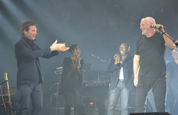 ベネディクト・カンバーバッチが28日(現地時間)、元ピンク・フロイドのメンバーとしても知られるデヴィッド・ギルモアのライブに登場した。ロンドンのロイヤル・アルバート・ホールでの全5公演のうち3日目となったデヴィッドのコンサートで、ピンク・フロイドが1979年にリリースした「ザ・ウォール」の収録曲「コンフォタブリー・ナム」を一緒に披露したのだという。この曲は当初、1985年にバンドを脱退したロジャー・ウォーターズがボーカルを務めていたのだが、1994年に同バンドが解散して以降デヴィッドは自身のソロコンサートでこの曲を歌うようになり、しばしばゲストボーカルを迎えている。今回はベネディクトが担当したこのパートは2006年、同じ会場でデヴィッド・ボウイもゲストボーカルを務めていた。ベネディクトは音楽好きとして知られており、撮影が入っていないときにはロンドンでさまざまなライブに足を運んでいるほか、2013年作『8月の家族たち』では「キャント・キープ・イット・インサイド」という曲を劇中で披露していた。デヴィッドとベネディクトは共通の友人を通じてお互いを紹介されたといい、デヴィッドに今回の出演を打診されたベネディクトはとても喜んでいたという。ベネディクトが登場したこの日のコンサートには多くの著名人も足を運んでいたようでスパンダー・バレエのゲイリー・ケンプは自身のツイッターに「デヴィッド・ギルモアのコンサートにいるところ。僕に連絡を取りたかったら、僕は今天国にいるからね」とツイートしていた。また、リチャード・E・グラントもベネディクトと一緒に写った写真をソーシャルメディアに投稿していた。(C) BANG Media International