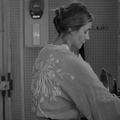 また、夫と愛人の間で揺れながらも、家では夫のために尽くすマノンが、部屋でくつろぐときのルームウェアは、背中に大きな花柄がデザインされたオシャレなガウン。アップにまとめた髪が、ラフなスタイルの中にも女性らしさを演出する。