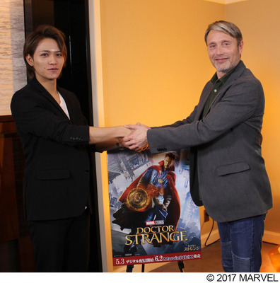 ベネディクト・カンバーバッチ主演最新作『ドクター・ストレンジ』のMovieNEXリリースが6月2日(金)に決定。そこで、特撮ドラマ「仮面ライダーアマゾンズ」で主演を務めたモデルで俳優の藤田富が、本作で宿敵を演じた“北欧の至宝”マッツ・ミケルセンに直撃インタビューを敢行した。突然の事故で神の手を失った天才外科医ドクター・ストレンジを甦らせたのは、魔術。厳しい修行により魔術師となった彼は、世界を滅亡から救うため“闇の魔術”との戦いに巻き込まれていく――。本作は、『アベンジャーズ』シリーズをはじめ数々の世界的大ヒット映画を製作するマーベル・スタジオ最新作。魔術によって作り出される時間と空間の概念を超えた、驚異のバトルアクションが話題となった。その本作で、ストレンジの宿敵カエシリウス役を演じたマッツにインタビューしたのは、Twitterのフォロワー数は約30万人を誇り、女子中高生を中心に人気急上昇中の藤田さん。大のマーベルファンとして知られる藤田さんが初めてハリウッドスターへのインタビューに挑戦! 本作の魅力について迫った。マッツといえば、『007/カジノ・ロワイヤル』のル・シッフル役やTVシリーズ「ハンニバル」でのハンニバル・レクター役など、悪役として名を馳せつつも、『ローグ・ワン/スター・ウォーズ・ストーリー』では主人公の父親ゲイレン・アーソ役を演じたことも記憶に新しい。本作では人知を超えた力を手に、カンバーバッチ演じるストレンジとの壮絶な戦いを繰り広げていく。まず、「『アベンジャーズ』を観たとき、主役級のヒーローがたくさんいてこれまでのヒーロー作品の常識が覆された」と語る藤田さん。マッツにマーベル作品の魅力を尋ねると、「マーベルのヒーローにはほかにはない特別な魅力があると思う。みんな欠点があり、人間的にも立派とは言えない連中だ」とマッツも持論を述べる。「たとえばドクター・ストレンジも自己中心的かつナルシストでどうしようもない男だが、物語の中で多くのことを学び、世界を危機から救うことになる。そして人間として成長を遂げるんだ」と語り、さらに、「ヒーローや悪役に欠点があるからこそ、誰でも共感できる。完璧なスーパーヒーローとは少し違うね」とマーベル作品の魅力について語った。さらに藤田さんが撮影現場の様子について質問すると、マッツはカンバーバッチとの印象深いスタントのエピソードを明かす。マッツ演じるカエシリウスがストレンジに向かって剣を振るも、よけられたためにガラス製のキャビネットが粉々になるというシーンで、「僕は宙に吊られたまま重い剣を取り出し、人に当てないように気をつけてガラスを割るという動作を何度も練習したよ。その結果、本番の撮影ではすべてが完璧に進み、カットがかかる直前についニヤけてしまった」と激白。「物を派手に壊すだけでお金をもらえるなんて最高だよ」と笑うマッツに、藤田さんが「もう1度観たら確認します」と言うと、「スロー再生したら、僕の笑顔が確認できるかもしれない」とうなずき、2人で笑い合っていた。インタビューを終えた藤田さんは、「マッツさんのように、僕も楽しみながら仕事を頑張りたい」と興奮気味にふり返ってコメント。「男として理想。余裕があってカッコいい」とすっかり感激した様子で、「いつかマーベル作品に出たい」と胸の内を明かした。「マーベル作品は『欠点があるヒーローだから共感を呼ぶ』と話していたけど、まさにそのとおりだなと。マーベル作品のように、いろんな人の共感を呼んだり期待に応えたりする作品に出てみたいです!」と自身の夢を熱く語っていた。本作のMovieNEXの発売に先駆け、4月7日(金)からは日本初公開となる貴重な資料、衣裳や小道具など約200点の展示などにより、その世界観を余すところなく紹介する「マーベル展」が六本木ヒルズにて開催。さらに5月12日(金)からは、銀河一“ヤバい”ヒーロー・チームの活躍を描く最新作『ガーディアンズ・オブ・ギャラクシー:リミックス』が公開される。今年も、マーベルから目が離せなくなりそうだ。『ドクター・ストレンジ』MovieNEXは6月2日(金)より発売、5月3日(水)より先行デジタル配信開始。