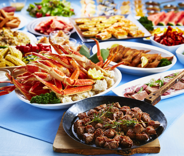 フリードリンクとしてはビールをはじめ、40種類以上の飲みものを用意。ハイボール、酎ハイはもちろん、スパークリングワイン、ワイン、果実を惜しげもなく使ったサングリア、華やかな香りと芳醇な風味が特徴のフレーバードウイスキー、日本酒、梅酒まで余すところなくラインナップ。料理は“ビールが一層おいしくなる”をテーマに、シェフのおすすめバルメニューを30種類以上も提供。今年はボイルズワイ蟹と牛ステーキが登場する。