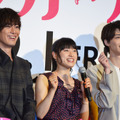 空飛ぶ青春エンターテインメント『トリガール!』の完成披露イベントが7月17日(月・祝)、イイノホールにて行われ、出演する土屋太鳳、間宮祥太朗、高杉真宙、池田エライザ、矢本悠馬、英勉監督が勢揃いした。ステージ上でもお互いに下の名前で呼び合うほど仲の良い出演者は、終始笑顔で語り合った。特に、「ほぼアドリブだらけだった」と現場の様子を明かした土屋さんらは、素で笑ってOKになっていたという場面を印象的にふり返っていた。人気作家・中村航の同名小説を映画化した『トリガール!』は、琵琶湖で行われる年に一度のコンテストにすべてを捧げる大学生たちの、汗と涙と努力の日々を描いた青春作品。これまで流されっぱなしの人生を送ってきた鳥山ゆきな(土屋さん)は、一目惚れした圭先輩(高杉さん)に誘われるまま、人力飛行サークルに加入。トレーニングを積むゆきなの前に、狂犬と呼ばれる坂場先輩(間宮さん)が現れるのだが…。本作で「変顔・毒舌・絶叫」を披露し、新境地を拓いた土屋さん。土屋さんが明らかに笑ってしまっているのにOKだったシーンについて、間宮さんが「いくつかあるんですけど」と記憶をたどった。「おんぶした後に落として、『重いぞ、痩せろ』と言う場面で、『そこそこスリムだろうが!』と返してきたことは、土屋太鳳個人的な叫びだ、って」と笑うと、土屋さんは、必死に「あれは(自転車を)漕ぐので、体重を落としたんです! なのに『まだ痩せろ』って…、心の叫びになっちゃったのかな(笑)」と笑顔を見せると、英監督も「あれは、役じゃない」と突っ込んでいた。イベントでは、「この夏がんばっちゃおうと思っていること」を各々が発表。プライベートでも間宮さんと親交の深い矢本さんは、「毎年恋人と…、いや、間宮祥太朗と旅行へ行こうと言っていて実現できないので、今年の夏は間宮祥太朗と旅行に行きたい」と「恋人」さながらの深い関係であると言及。間宮さんも、「毎年フェスとかは一緒に行っているんですけど、泊まりがけで旅行は行けていないので」と同調すると、MCに「二人でですか?」と確認され、「二人でしょう! 誰かいります?」(矢本さん)、「どこでも矢本と一緒なら楽しいですけど! 行ったらSNSにあげまーす」(間宮さん)とアツアツぶりを見せつけていた。『トリガール!』は9月1日(金)よりTOHOシネマズ新宿ほか全国にて公開。