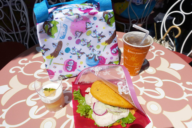 まずワールドバザールを抜けた広場に面したオープンカフェスタイル「リフレッシュメントコーナー」では、おなじみのホットドッグが美味しい「スペシャルセット」(900円)を販売中。