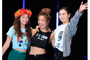 第24回TGCには『PとJK』で亀梨和也と登場した土屋さん。今回は、間宮さん、高杉さんらを引き連れ、ランウェイを闘歩した。さらに土屋さんは“トリガール”にちなんで、鳥の衣装で登場! そして間宮さんの「琵琶湖…いや、TGCのてっぺんとれんのか!?」という問いかけに「太鳳、飛びまーす!」の掛け声で、土屋さんがTGC会場の頭上高くへ上昇! フライングにも挑戦した。また、ランウェイでは土屋さんが主題歌を歌唱するなど終始ご機嫌の様子。ステージ上でも終始和気あいあいとした雰囲気で仲の良さを感じられた。