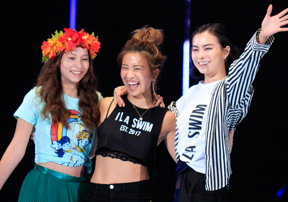 国内最大級のファッションイベント「マイナビ presents 東京ガールズコレクション 2017 AUTUMN/WINTER」が9月2日(土)、さいたまスーパーアリーナにて開催。先日、8月29日にNetflixにて配信された36話でついに最終話を迎えたばかりの「TERRACE HOUSE ALOHA STATE」(テラスハウス アロハ ステート)に出演していたエビアン・クーが自身のブランド「ILA SWIM」を引っさげ、同じく出演していたローレン・サイ&Nikiと共に登場した。2005年8月から年2回開催している史上最大級のファッションフェスタ「東京ガールズコレクション」(以下、TGC)。第25回となるTGCは「BEYOND」をテーマに、さまざまな“BEYOND something”(いまを超えてゆく最旬なコンテンツ)とともに、新時代の東京のガールズカルチャーを世界へ発信する。テーマを象徴するキービジュアルにはこれまで、蜷川実花や天野喜孝らとコラボをしてきたTGC。今回、写真に刺繍を施すという独特な手法で人気を博す、人気アーティスト・清川あさみが手掛けている。「テラスハウス」は、シェアハウスに同居する男女6人の生活を四六時中カメラで追いかけ、彼らの生活にあふれる、誰もが憧れるようなキラキラした青春・友情・恋愛・夢、そして、嫉妬・挫折といった、リアリティー・ショーならではのさまざまな“ドラマ”を記録した人気番組だ。母親がハワイの人気アパレルショップ「88TEES」創始者ということもあり、スタッフとしても働くエビアン。今回は「88TEES」と「ILA SWIM」のブランドを紹介。ステージの最後には、エビアンさんもローレンさんとNikiさんと並んで登場。ファン垂涎の3ショットが実現した。さらに、エビアンさんを挟んでローレンさんとNikiさんからほっぺにキスする一幕も。仲の良さが伺えるキュートなランウェイを披露した。