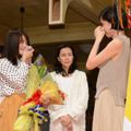幼なじみの助川時子役の佐久間由衣は、有村さん同様涙を流しながら「(有村さんに)パワーをもらっていたので、感謝の気持ちでいっぱいです。みね子を通してたくさんの愛情をもらって…。本当に幸せな時間でした。大好きです!」と伝え、抱き合った。