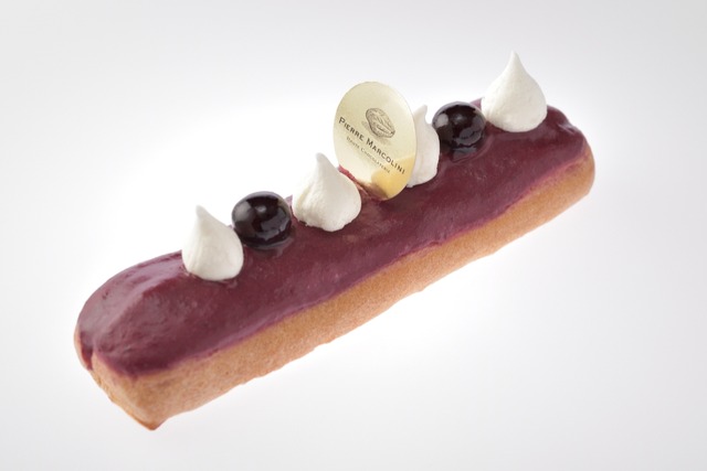 ピエール マルコリーニ_エクレア「カシス フロマージュ」カシスの旨みが詰まったマスカルポーネクリームに、ホワイトチョコレートとカシスのグラサージュを施したエクレア「カシス フロマージュ」