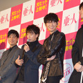 桜井画門の大ヒット漫画を同名映画化した『亜人』の初日舞台挨拶が9月30日(土)、都内にて行われ、主演の佐藤健、共演の綾野剛らが登壇した。予告編でも解禁している佐藤さん&綾野さんの筋肉美も話題になっている本作で、川栄李奈が「1,800円でふたりの裸が見られるって贅沢ですよね? 安くないですか!? 私、10回くらい観たいです」と女子的目線で解説すると、佐藤さんが「どのCMを見ても裸、裸、みたいで。そういうつもりではなかったんですよね…裸押しとは…」と惑うも、綾野さんは「しっかりケツも撮ってもらいました! 全裸のカットだけの予告作ってくれればよかったのに」と開き直っていた。本広克行監督も裸のシーンがお気に入りのようで、「CGも使っていないので本当にすごい裸で、撮影40分前にパンプアップタイムがあって。スタッフもテンションが上がって『撮れ、撮れ~!』って」と結局は尽きない裸ネタで盛り上がっていた。さらに、MX4Dでは綾野さんの裸シーンで、場内がバラの香りで満ちるという演出もなされていると、佐藤さんが押す。この日、初めてその演出を聞いたという綾野さんは、「おかしいでしょう!」と照れ笑いを浮かべたが、観客からはどよめきと共に「もう一度観る!」という掛け声が飛んでいた。『亜人』は絶対に死なない新人類・亜人が繰り広げる驚天動地のバトルアクション。研修医の永井圭(佐藤さん)は、ある日、事故で死亡したが、直後に生き返り亜人であることが発覚。そのため、国家に追われ続け、非人道的な実験のモルモットとなってしまう。そんな圭の前に突如、人類に牙をむく亜人最凶のテロリスト佐藤(綾野さん)が現れる。完成披露イベントでも話題になった千葉雄大のかわいさには、この日も注目が集まった。綾野さんは「基本、何もかもかわいいもんね」とメロメロ。ただ千葉さん本人は頑張って(?)、「上目遣いをしない」と宣言をした。しかし、直後に玉山鉄二が「絶対してるじゃん(笑)。大好きだと思う、俺も好きだもん! 本当にチワワみたいでかわいいじゃん」と、上目遣いを推奨した。千葉さんは「もう28歳なんで、ちゃんとしたいなあ。お願いするとき『上目遣いしますよ』と言われて、無意識で(自分が)まじきもいな、って」とふり返ったが、佐藤さんや綾野さんなど皆に上目遣いをリクエストされると、ちゃっかり決めるというサービス精神旺盛な千葉さんだった。そのほか、初日舞台挨拶には城田優、浜辺美波が登壇した。『亜人』は全国にて公開中。