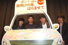 『ポンチョに夜明けの風はらませて』(C)2017「ポンチョに夜明けの風はらませて」製作委員会「高校生という設定に引っかかる部分もなかったし、疑問も湧かなかった」というのは、ノーフューチャーな行動派・又八役の太賀さん。実は原作者・早見氏とは親交があり、大ファンでもあるのだ。一方、一流大学不合格に落ち込むクールなジン役の中村さんは「3人の中では一番冷静で、羽目を外しそうになる2人の軌道修正担当。頭がいいので騒げるのはこれが最後だろうと理解しながらムチャ期間を楽しんでいる人」と役柄分析。下半身に悩みを抱えるいじられキャラ・ジャンボの矢本さんは「2人が自分と同年代ということもあり、ちゃんと老けているので『俺も同じか、なら大丈夫だ』という変な安心感があった。あえて声色のキーを上げることも、無理してフレッシュ感を醸し出そうとすることもなく、そのおっさん感が出たことで、又八・ジン・ジャンボが学校で孤立しているという説得力が生まれた」という。