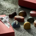 会場では、フランスの権威あるショコラ愛好会「C.C.C.」より最高評価である5タブレットや金のタブレットを受賞した歴代のボンボン・ショコラを詰め合わせた、限定商品がラインナップ。「アンリ・ルルー」のバレンタインと言えばふんわりと大きなリボンが定番の「コフレ・アローム」をはじめ、“香りによって開く、新たな世界の扉”をテーマにした「コフレ・フュメ」は、中国茶のラプサンスーチョンのスモーキーな香りやアイラ島モルトのピート香、ナッツの焙煎香、様々な香りを加えた新作ショコラを詰め合わせた一押しコフレだ。