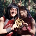 新CMは、ついに付き合い始めた金太郎(濱田さん)と織姫(川栄さん)のあまりのラブラブぶりに桃太郎(松田翔太)と浦島太郎(桐谷健太)が呆れる、というストーリー。2人が山道を歩いていると、「ワハハハハのハ」と陽気に歌い、腕を組んでスキップしながら近づいてくる金太郎と織姫の姿が! 「ちょ、ちょ、ちょ、ストップー!」と行く手を阻止する浦島太郎。よく見ると、いつもと違う服装の織姫。「どうしたの、その格好?」と桃太郎が尋ねると、織姫はうれしそうに「ダーリンとペアルックにしたの!」と答え、隣にいるデレデレの金太郎と「ね~」。