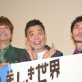 お互いの演技の印象を聞かれると、香取さんは、「トップバッターの吾郎ちゃんの園監督のところは羨ましかったですね。勢いがあって!」と言えば、稲垣さんも「香取くんのシンゴちゃん役も、ああいう静かなシンゴ、なくはないけど新しいなって思って。いつものイメージと違うし。草なぎくんの役も、かなりエキスパートしてて、ぶっ飛んでいるというか」と楽し気にトークを交わす。草なぎさんも「不思議な世界観なんですけど、それぞれが『クソ野郎』でよかったです」と満足気に感想を語った。