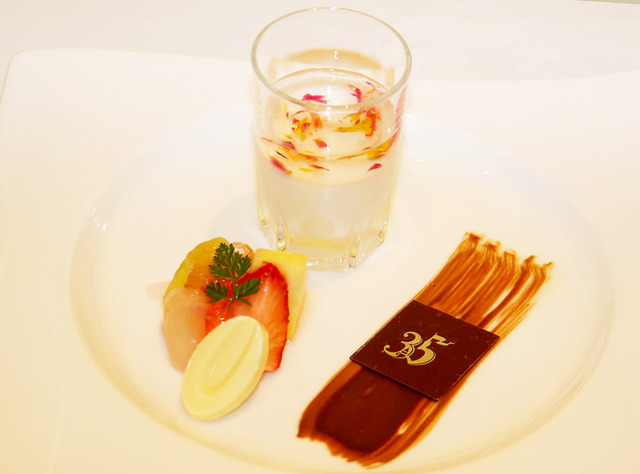 同じく地中海レストランのオチェーアノでは、「“ディズニー・イースター”ランチコース」(3月20日~6月6日)(5,200円)も実食。ランチコースでは、桜鱒のマリネとホワイトアスパラガスのブランマンジェ、牛フィレのグリル、アールグレイのガナッシュ入りミルクチョコレートのムース(デザート)の3品をいただく。