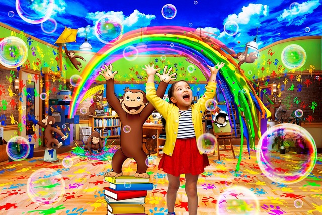 親子で存分に楽しめる新アトラクション「プレイング・ウィズ・おさるのジョージ」。初めて出会う興味津々の世界でジョージと友だちになって。