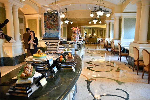 イベント連動“ホテル夏メシ”!写真38枚実食レポ☆ (C) Disney続いて東京ディズニーランドホテルでは、「シャーウッドガーデン・レストラン(ブッフェ)」にて、<“ディズニー夏祭り”ディナーブッフェ>(大人5,000円/中人3,500円/小人2,500円)にチャレンジ! 同レストランは多彩なメニューが同時に楽しめるほか、居心地バツグンの店内装飾も最高で、1年通してイベント中に必ず訪れたいレストランだ。