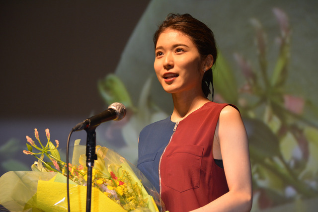 松岡茉優/第10回TAMA映画賞授賞式「2年前、最優秀新進女優賞をいただいてから一番の成長は、悔しいと思えたことです。それまでだったら感動していただけだったと思う。サクラさんに、いつか追いつきたい、追い越したいと思ったのは、ここで俳優として認めていただいたから。今回、自信と温かい気持ちと、心強い後押しで飛躍していくことを誓います。本当にありがとうございます」と深々と頭を下げた松岡さんは、この日一番の長く心のこもった拍手を観客から受けていた。