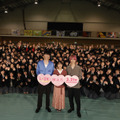 今回上白石さん、杉野さん、横浜さんは、同中学校で開かれていた3年生のお別れ会にサプライズ登場。絶叫交じりの熱烈な歓声を浴びながらの登場となった3人は思わず「こんなキャーキャー言われたの初めて」と驚く。イベントでは、横浜での撮影エピソードや中学校時代での思い出を語りつつ、3年生からの質問に回答する場面も。受け答えの度に、大きな歓声が上がり盛り上がりを見せていた。