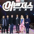最新鋭のパワードスーツで戦うセレブヒーロー、アイアンマン役ロバート・ダウニー・Jr.をはじめ、本作で日本のシーンに登場するとみられている弓の名手ホークアイ役ジェレミー・レナー、規格外のパワーを備えた不屈のヒーロー、キャプテン・マーベルとしてシリーズ初参加を果たすブリー・ラーソン、そして、これまでのマーベル・シネマティック・ユニバース(MCU)全作品のプロデュースを務めるマーベル・スタジオのプレジデント、ケヴィン・ファイギ、本作のメガホンをとったアンソニー&ジョー・ルッソ兄弟が肩を並べた。