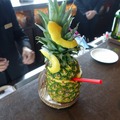この「VIVA!! Pineapple(ビバ!!パイナップル)」は、最上22階にあるメインバー「マートレット」にて提供をスタート。同店のサ-ビススタッフがパイナップルを専用の道具を使い、中身をくり抜いてカクテルを投入する器を1個ずつ作る。くり抜いた甘くてジューシーなパイナップルの果肉はミキサーにかけ、その全てをカクテルとして美味しくいただける品だ。