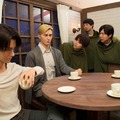 続いて、リアルなエルヴィンとリヴァイの「クロノイド」を訪れた声優陣は、いまにも動き出しそうなほどの完成度に感嘆の声を上げ、リアルなリヴァイと対面した神谷さんは、「今にも動き出しそうなくらいのクオリティで期待以上です。このクオリティの高さは、実際に生で見てみないとわからないですね。手の甲には透けて見える血管があったり、カップが少し欠けていたりと、リアルにするとこうなるんだな」と感動をコメント。メンバー全員での体験の証にクロノイドの壁面へ記念のサインを記した。