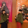 パークに到着した声優陣は、調査兵団のマントをまとい、立体機動装置を身に付けて、キャラクターさながらの「心臓を捧げよ!」ポーズを披露。また、「進撃の巨人・ザ・リアル」のアトラクション前では、その場所に偶然いあわせた「進撃の巨人」のファンから、驚きの大歓声が上がった。