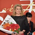 また、今回のイベントでは、2人の来日を祝して日本語吹き替えを担当した宮本さん(ファビエンヌ役)、宮崎さん(リュミ―ル役)、佐々木みゆ(シャルロット役)が、会場へ駆けつけ、それぞれ花束を贈呈。「このお話を頂いてから、朝から晩まで映画を拝見しておりましたので、ドヌーヴさんに対して、どこか懐かしい方にお会いした感覚がありました。今日はありがとうございます」(宮本さん)、「この場に一緒に立たせて頂けていることが本当に恐縮で、幸せな一日です」(宮崎さん)と対面を喜んだ。