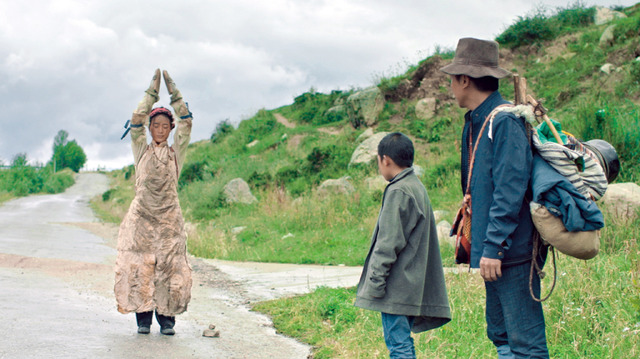 『巡礼の約束』 (C)GARUDA FILM物語前半では妻が巡礼をし、後半はそれを引き継ぐように夫と、その夫とは血の繋がらない息子、そして幼いロバが巡礼に加わっていく。「最初は妻が主人公、次に夫が主人公になる。主人公が変わるというのは、普通に考えて、映画の作劇としてはリスクがあります。でも、今回はそのように撮りたいと思いました。夫婦という一つの存在として捉えれば、それは可能ではないかと。後半のために前半があります。夫がどんな人間かを後半で見せ、そこでチベット文化の奥深さも見せることができます。チベット文化というと抽象的に聞こえるかもしれませんが、チベットで個人を描く時、その行動、その決断は必ずチベット文化に影響されていると思うのです」と監督は語る。