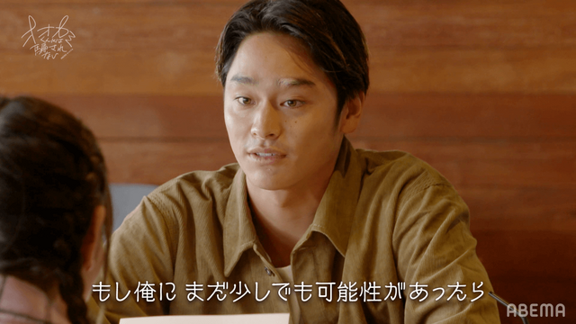 「オオカミくんには騙されない」第10話 (C) ABEMA第10話自身の作品の撮影前に、そうまは月LINE(当人同士しか読めない)で“2人きりで遊びに行こう”とついにノアを呼び出した(第10話)。しかも、「ノア見てても、がくくんのこと好きだってわかる」からこそ「悔いのないように(気持ちを)言いたい」と、ノアを巡って三角関係になったがく本人の前で正々堂々としている。竹を割ったような性格で、サーファーとしてのストイックさものぞかせるそうまは“オオカミくん”とは最も遠い存在のように思える。