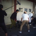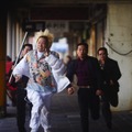 金髪に真っ白なTHE NORTH FACEの上下と白いNIKEのスニーカーを身に着けた本シーンで、特に車にはねられる場面は、舘さんが「3テイクもやったの?」とビックリするほどリアルを追求した撮影だったようで、綾野さんも「怪我をしないようにイメトレして臨んではいるものの、轢かれる瞬間は思った以上に車は重かった」とふり返る。また現場では、綾野さんはリーダーシップを発揮し、演出だけではなく、撮影中に転んだカメラマンの怪我の手当まで率先してかってでていたという。