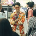 何より特徴的なのはその派手なスーツ姿。今回撮影地となった成田空港、東京タワー、新宿・歌舞伎町など、見慣れた東京の街でオレンジや赤といった派手な色遣いのスーツを披露しており、国際色豊かな豪華キャスト陣にも負けない存在感を放っている。
