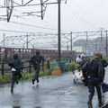 キャストとスタッフを悩ませたのは当日の雨。当初、瀬々監督は雨の中で撮るつもりはなかったが、スケジュール的にもあとがなかったために、全身ずぶぬれになりながらの撮影に。幾度も繰り返し走るキャスト3人と必死でついていく撮影隊。苫篠が利根を見つけて走り始めるシーン、長い歩道橋でひたすら走り続け追いかけるシーン、歩道橋を降りてから住宅街へと続くシーンと、走り続けるカットが繰り返し撮影された。
