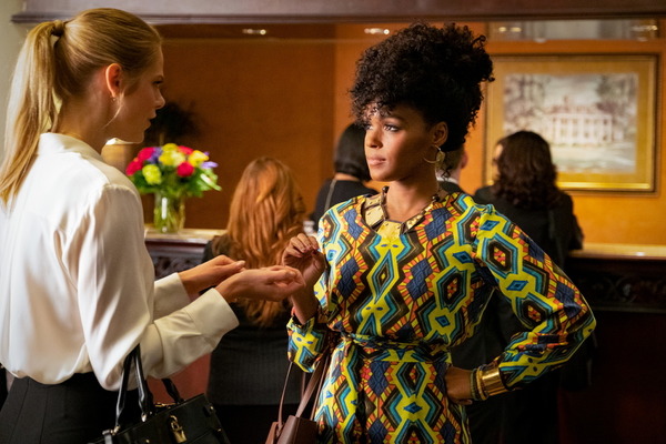 この度解禁されたのは、公私共に順風満帆の日々を送っていた主人公ヴェロニカ(ジャネール・モネイ)が、滞在しているホテルのフロントで友人と再会し会話を交わした後、白人女性のフロント係にレストランの予約をお願いするというもの。ありふれた日常のワンシーンのはずなのだが、何かがおかしい。この違和感は『ゲット・アウト』や『アス』で感じたそれに近しい。しかも各ショットやセリフには本作のパラドックスをひも解くヒントが散りばめられているようで…?