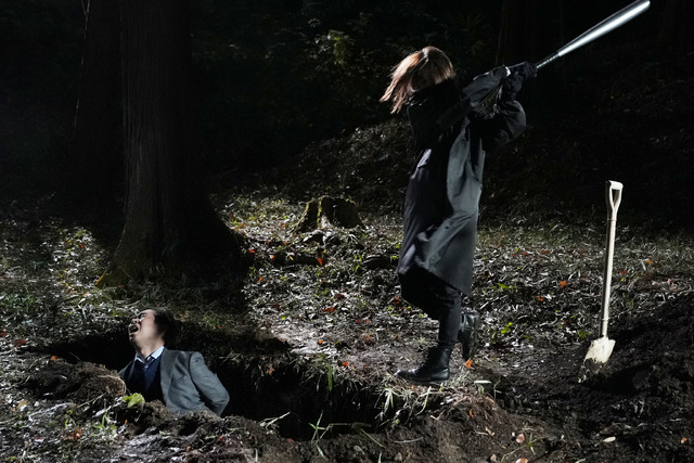 第9話では、充(前野朋哉)が暗闇の中で目を覚ますと、穴の中で手足を縛られ、身動きが取れない状態に。頭上から土を降らせる黒いコートの女は、充が命がけで制止する声も聞かず、大量の土を入れ続ける。「まだ償える」と必死に訴える充に、「邪魔しないで」と金属バットを振り下ろし、血しぶきが顔に飛び散る!