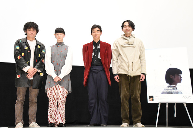「ndjc:若手映画作家育成プロジェクト」合評上映会が2月2日(水)、丸の内TOEIにて行われ、49名の応募者のなかから、ワークショップ、製作実地研修を経て短編映画を完成させた団塚唯我監督、道本咲希監督、藤田直哉監督、竹中貞人監督が登壇し、作品に関する舞台挨拶を行った。