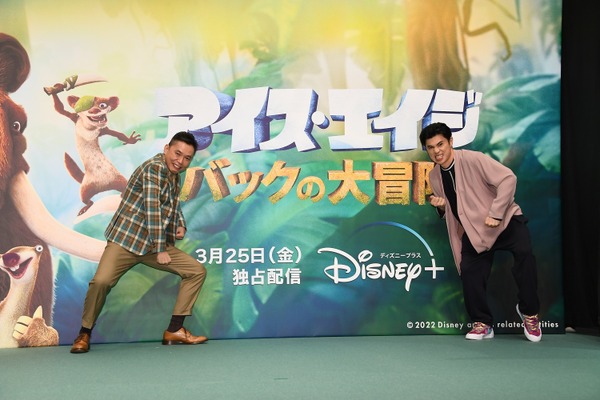 3月25日(金)本日配信がスタートする映画『アイス・エイジ バックの大冒険』の配信記念イベントが行われ、シドの日本語版声優を務めた太田光(爆笑問題)と、応援隊長として小島よしおが登壇した。