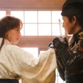 今回公開された、2人が互いに強く見つめ対峙するこの場面は、濃姫の父の領土・美濃で起きたとある事件の直後。政略結婚という最悪の出会いで結ばれた2人。信長の喉元に懐刀をつきつける殺気が感じられる濃姫と、その強い視線を受け止める信長。まさに「愛すか、殺すか」という関係が鮮明に写し出されている。